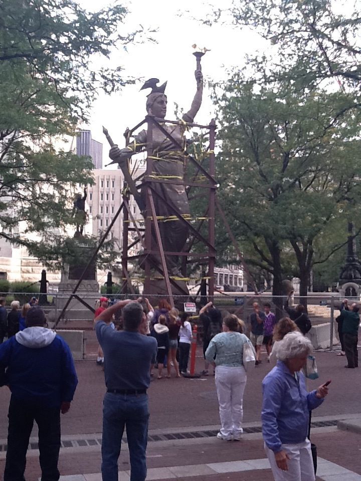 It's the 'Lady Victory' statue that tops the Sailors' and Soldiers' Monument on the Circle in Indianapolis.
