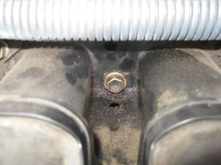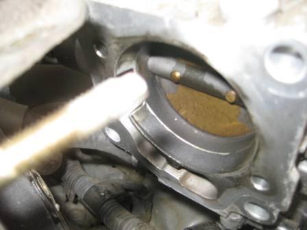 Dirt accumulating around center bolt at intake manifold gasket. This is why I suspected that the intake manifold gasket was bad (in addition to the fact that I knew it was the older black one). When it is cold out, the vibe does the idle hunting thing. Hopefully this replacement cures it.